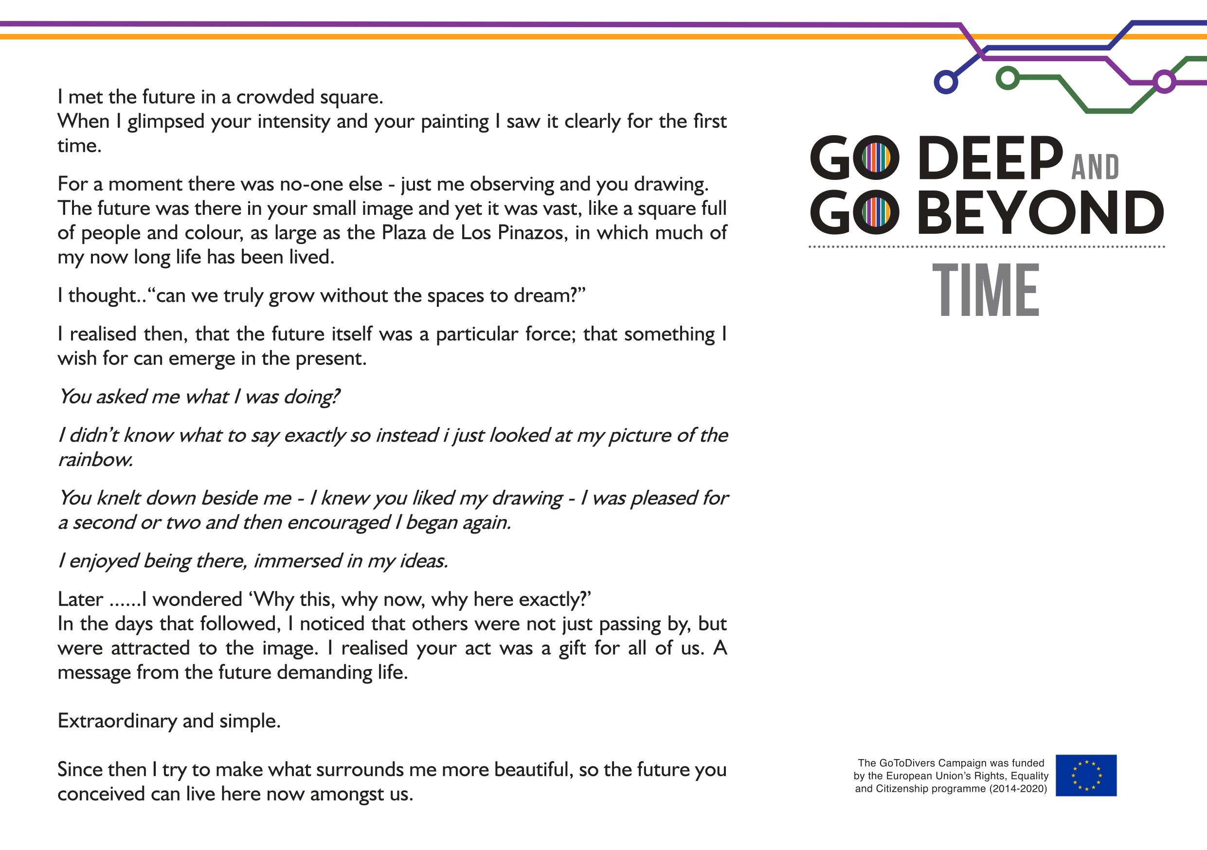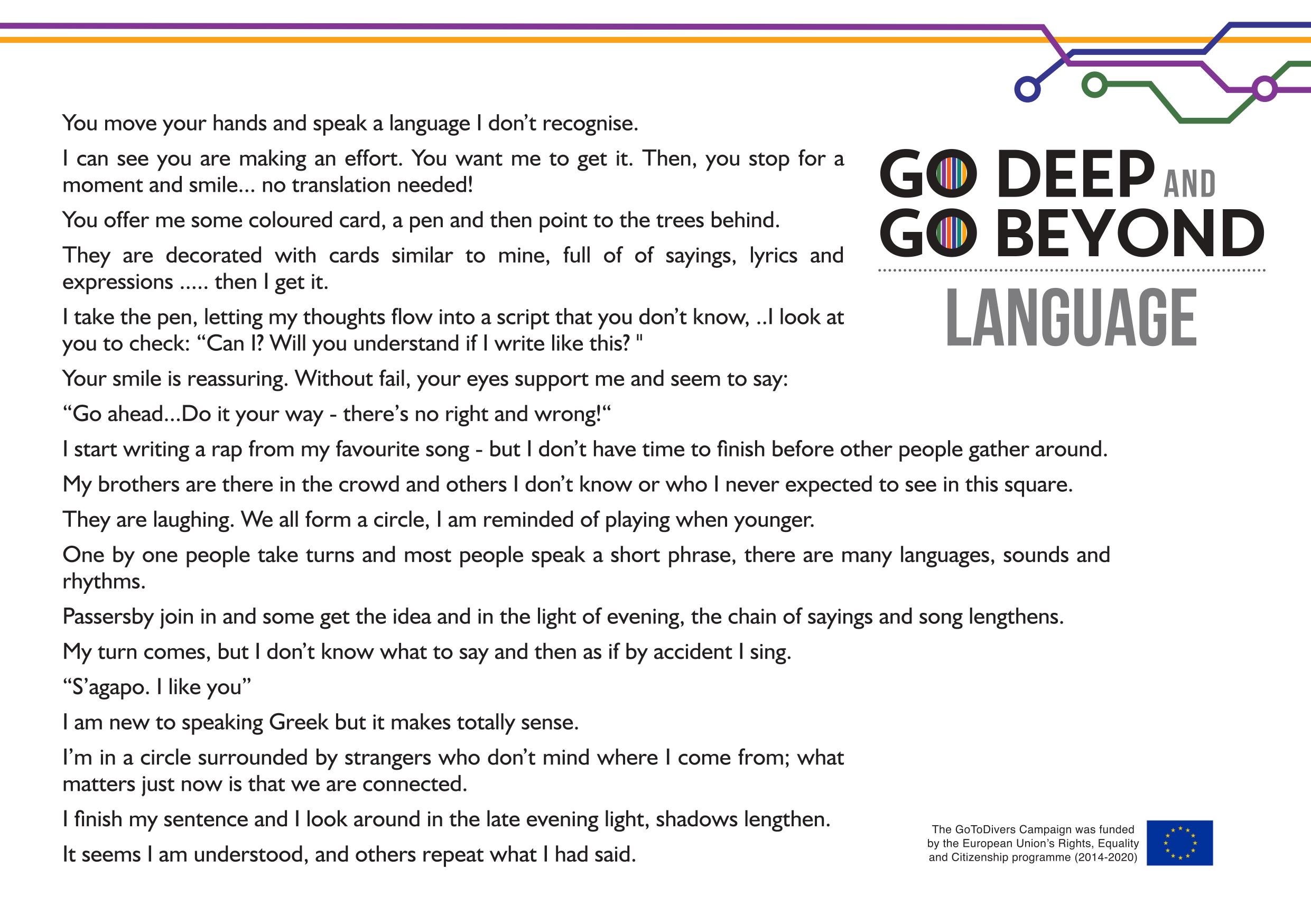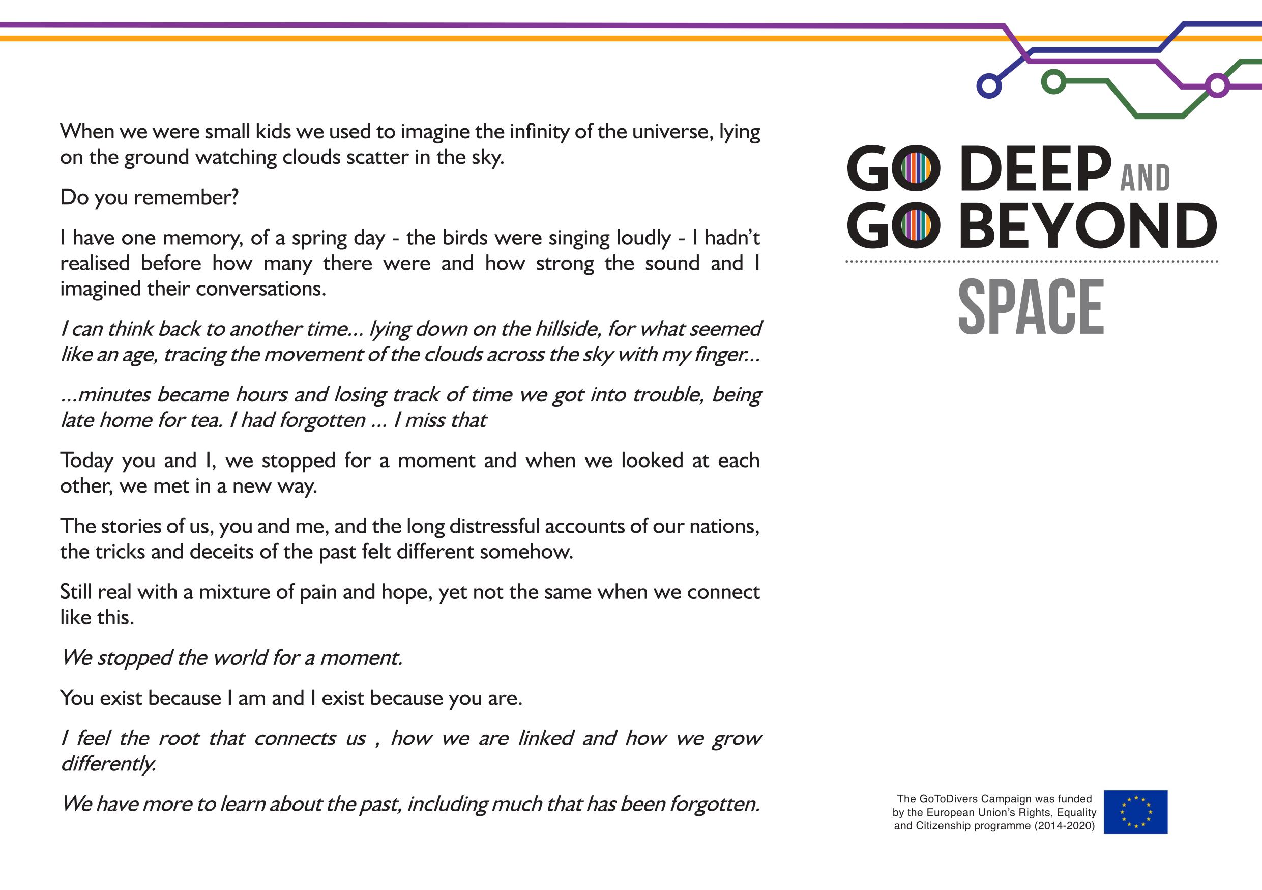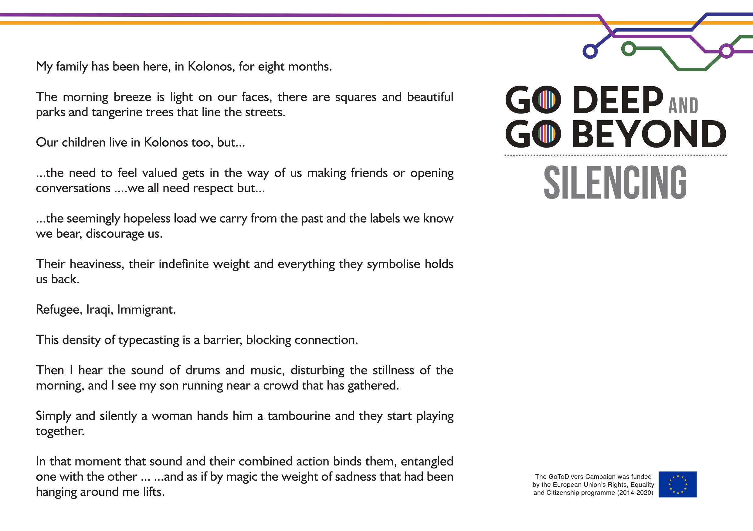 The four Go Deep games exhibited are supported by the EU’s Rights, Equality and Citizenship programme (2014-2020) under the project Go Deep Together in Diversity. In these four games over 100 people directly participated as “players”, while well over 500 community-members were also involved, helping to set up 10 collaborative community-events and urban interventions to change the shape of the neighbourhood.