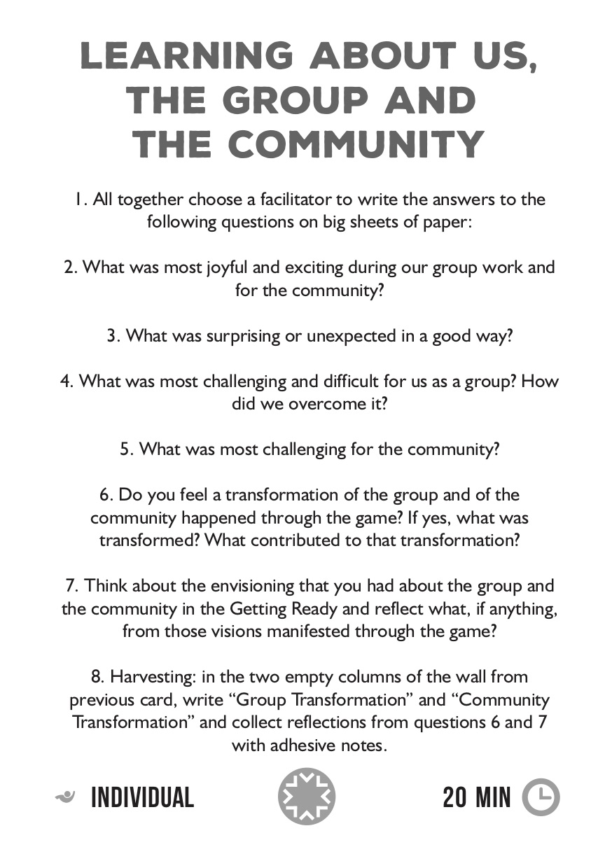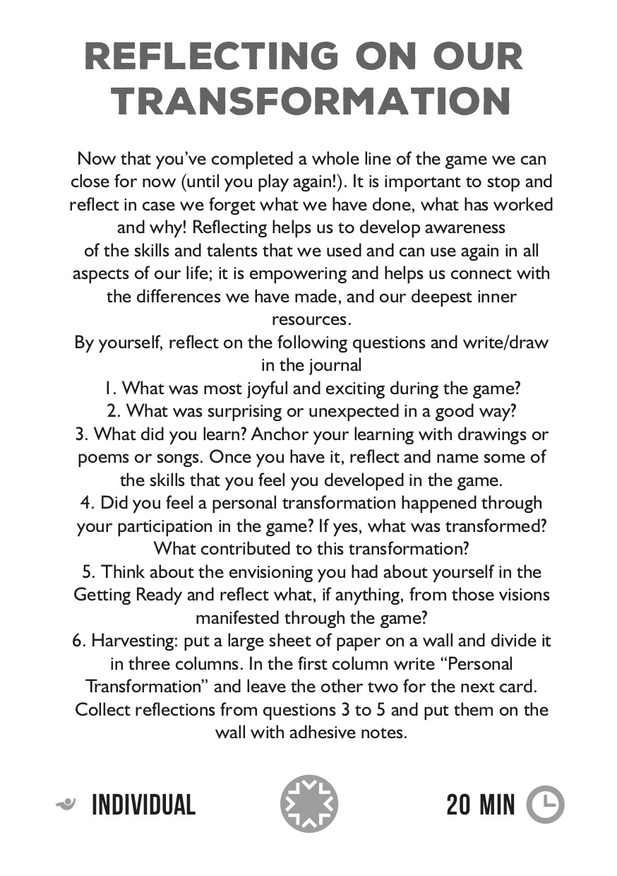 We have designed new cards for the game through which to envision the potential transformations and collect the stories of change in the participating people.